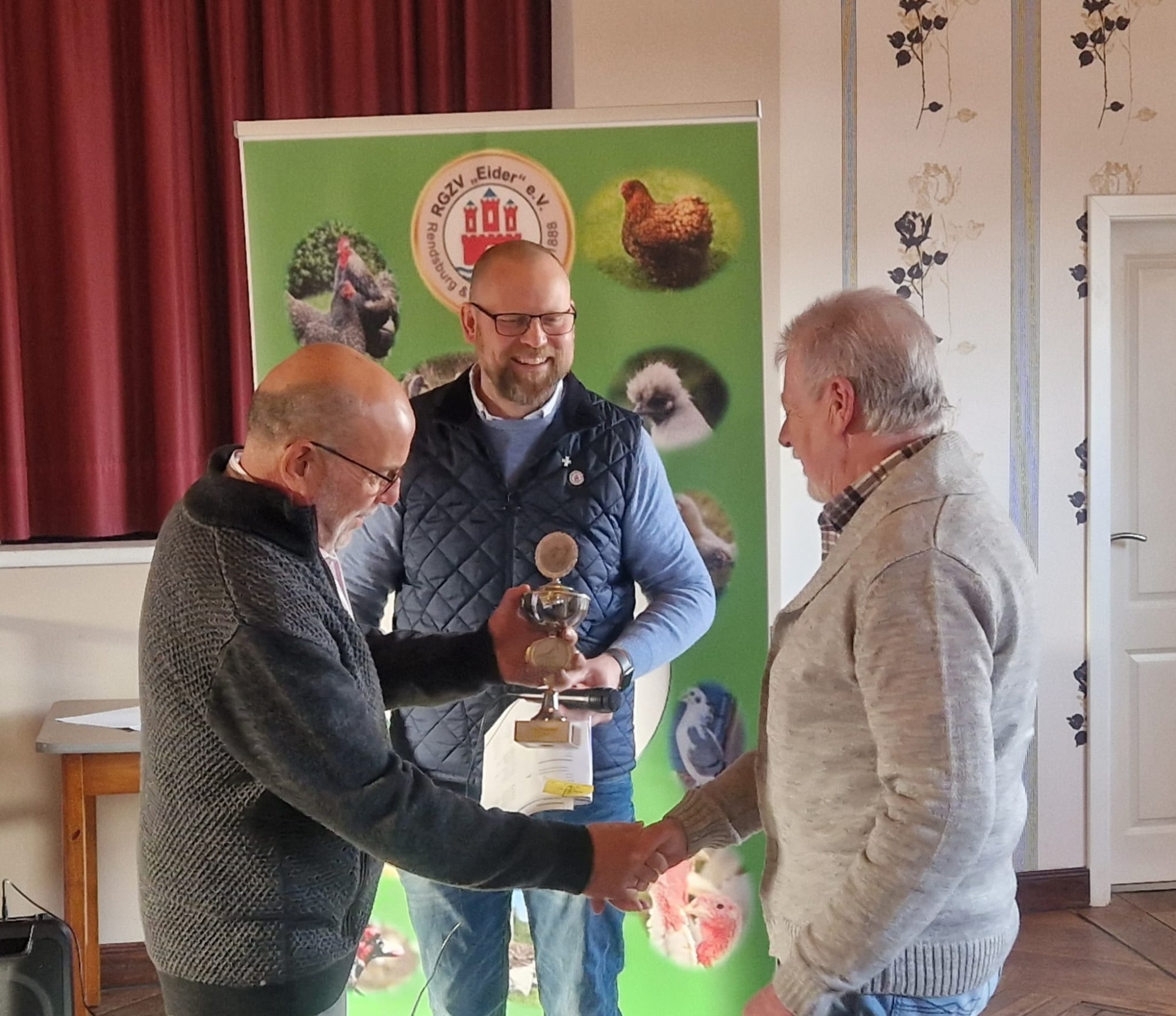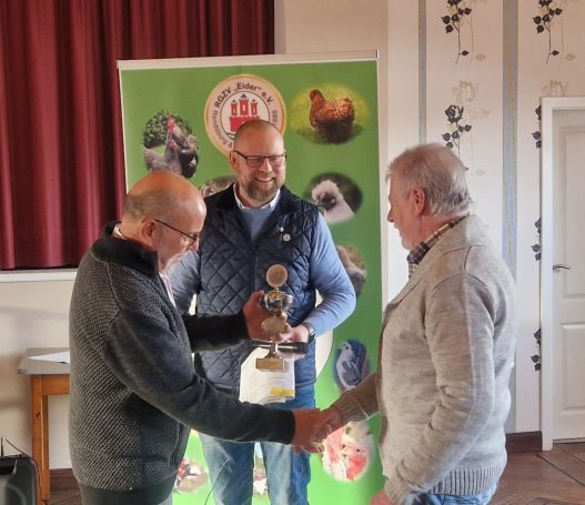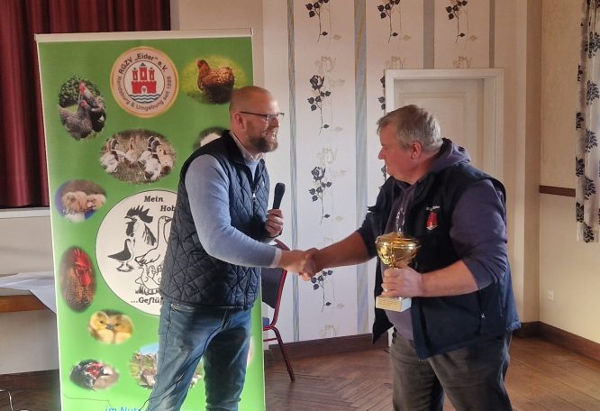 Im Rahmen dieser Veranstaltung überreichte unser 1. Vorsitzender, Marcel Schultka- Dohnert, zum allerersten Mal in seinem Amt, gemeinsam mit dem 2. Vorsitzenden, Manfred Röstel, die Pokale an die Preisträger der 54. Ortsschau des Nutz- und Rassegeflügelzuchtvereins „Eider“ e.V Rendsburg und Umgebung.