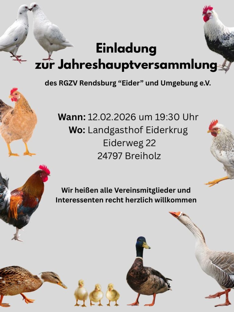 Auch die neuen Vereinstermine für das Zuchtjahr 2026 im Nutz- und Rassegeflügelzuchtverein aus Rendsburg wurden festgelegt. Diese findet ihr auf unserer Homepage: